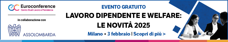 La collaborazione, nel frattempo, ha consentito di promuovere il convegno che si terrà lunedì 3 febbraio, dalle ore 10 alle 13, sulle disposizioni della Legge di Bilancio 2025 riguardanti i lavoratori dipendenti e il welfare aziendale: dopo i saluti dell’amministratore delegato di Euroconference Giuseppe Busacca, seguiranno gli interventi di Domenico Miscioscia (direttore Area Politiche discali di Assolombarda), Marta Castelli (Area Politiche fiscali di Assolombarda), Valeria Innocenti (direttore Area Lavoro e previdenza di Assolombarda), Enrico Carnevale Miino (Area Lavoro e previdenza di Assolombarda), Sandro Cerato (dottore Commercialista, revisore Contabile e pubblicista, direttore Scientifico Centro studi tributari di Euroconference).