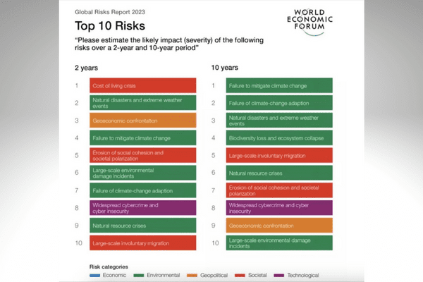 Al termine dei lavori del World Economic Forum, è stata redatta una lista a medio e lungo termine di quali saranno i dieci rischi globali più probabili, quelli che dovremo affrontare nel prossimo futuro: il Global Risks Report 2023.