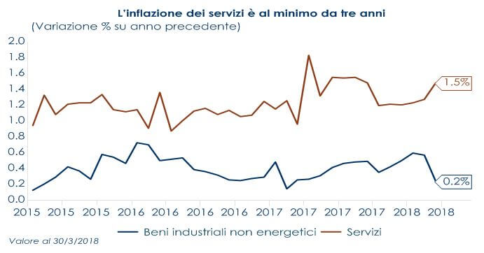 Nell’Area Euro, l’inflazione ha rallentato inaspettatamente ad aprile, risentendo di un effetto stagionale e temporaneo legato alla pasqua: la stima preliminare di aprile si è attestata a 1,2% a/a (marzo:1,3% a/a). Il calo di aprile non risulta legato alle componenti più volatili quali prezzi alimentari ed energetici, che invece si sono avvantaggiati del recente aumento del prezzo del petrolio ma si diffonde anche alla componente core che, dopo essere rimasta stabile per 3 mesi consecutivi a 1,0%, scende a 0,7%, riportando la lettura più debole nell’ultimo anno. Pur non disponendo della scomposizione per componenti proprio sulla componente core, ed in particolare sulla componente dei servizi dovrebbe aver pesato l’effetto stagionale legato alla Pasqua, che è caduta a inizio aprile, influenzando i prezzi delle vacanze. Questa debolezza ulteriore dovrebbe essere temporanea ma va a pesare ulteriormente sulla componete servizi, che già a marzo si era attestata ai valori più bassi degli ultimi tre anni.