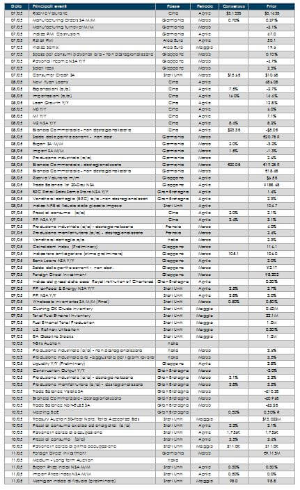 - Asia: inflazione di aprile sotto i riflettori anche in Cina, insieme ai numeri della bilancia commerciale. In Giappone, massa monetaria M2 e M3 di aprile.
