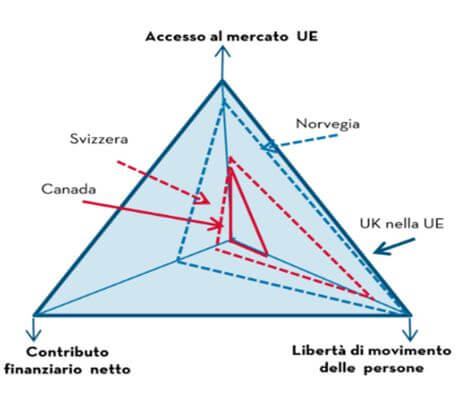 - L’accordo dovrà contemperare tre elementi: accesso al mercato UE, libertà di movimento delle persone e contributo finanziario netto pagato all’UE.