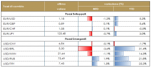 Asia: Più ricca l’agenda asiatica guidata dai dati giapponesi. Da Tokyo, infatti, arriverà la nuova lettura sul PIL del secondo semestre, assieme a quella del deflatore del PI. Il paese renderà noto anche il livello della bilancia delle partite correnti e la variazione negli ordinativi di macchinari nonché il livello dei prezzi alla produzione. Anche la Cina avrà importanti dati sul fronte dell’inflazione, con indicazioni sui prezzi al consumo e alla produzione. Da Pechino, poi, sarà trasmesso il livello della bilancia commerciale e quello della massa monetaria M2.