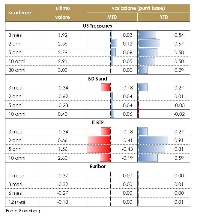 - La BCE ha finalmente annunciato la fine del QE a dicembre 2018 e il primo rialzo dei tassi non prima dell’estate 2019