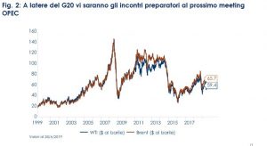Relativamente alle tensioni USA – Cina riteniamo che i presidenti Trump e Xi cercheranno un compromesso temporaneo simile a quello annunciato il vertice del G20 di dicembre, che preveda sorta di pausa nell’escalation commerciale, insieme all’impegno a riprendere i negoziati. Tuttavia, date le differenze di posizione trai due paesi, è ragionevole attendersi che qualsiasi tregua si rivelerà temporanea. Oggi non esistono le condizioni per l’istaurarsi di un reale partenariato trai due paesi: gli Usa stanno adottando una strategia di contenimento della crescita cinese, mentre questa difende il proprio diritto a svilupparsi e cerca di internalizzare le produzioni in cui è osteggiata dagli USA Dopo aver aumentato la tariffa del 10% su un valore di 200 miliardi di dollari delle importazioni cinesi al 25% a maggio, Trump aveva minacciato di imporre una tariffa del 25% sui restanti 300 miliardi di dollari. Questa ulteriore fase di dazi è stata sospesa temporaneamente in attesa di un incontro con Xi questo sabato, dopo quello che la scorsa settimana ha dichiarato aver avuto “un’ottima conversazione telefonica”. Allo stesso tempo, Xi ha osservato che “la Cina e gli USA guadagneranno entrambi cooperando e perderanno combattendo”. I mercati hanno tratto conforto limitato da questo, con l’indice azionario cinese MSCI China che è aumentato modestamente dall’inizio di giugno e i prezzi dei metalli industriali che hanno recuperato solo una parte delle loro perdite. Ci potrebbe quindi essere una risposta positiva da parte dei mercati in caso di un accordo per rinviare ulteriori misure protezionistiche. Non è ragionevole attendersi molto di più, mentre permane il rischio che l’amministrazione Trump cerchi di prolungare l’incertezza commerciale in modo da assicurarsi un atteggiamento accomodante da parte della Fed. L’altro elemento oggetto di discussione sarà la progressiva disarticolazione delle regole internazionali sul commercio nonché il recente indebolimento del WTO e del suo sistema di composizione delle dispute commerciali tra i 164 Stati membri. Gli Usa ritengono che la WTO li abbia penalizzati attraverso un’azione giuridica eccessiva, che richiedevano la soddisfazione di norme mai concordate né in ambito WTO né in ambito GATT. Tuttavia Gli USA non hanno mai chiarito quali modifiche vorrebbero introdurre. Oggi il WTO rischia di essere smantellato per le difficoltà intrinseche di riformarlo. La sua legittimazione è messa in discussione non soltanto da Trump, ma anche da alcuni paesi emergenti, come l’India, che trovano inaccettabili eccessive ingerenze nelle politiche interne. Il punto debole del sistema di soluzione delle dispute della WTO è l’Appellate Body, una “corte d’appello” nelle controversie su dazi, misure di dumping e sussidi a cui i paesi hanno attualmente il diritto di appellarsi in caso di disaccordo con una pronuncia pregiudiziale. È composto da sette “giudici” nominati dagli Stati membri. Per ridurlo alla paralisi è sufficiente bloccare il rinnovo di quelli in scadenza. Già l’Amministrazione Obama aveva cominciato a rallentare le nomine dei nuovi arbitri. Trump ha continuato questa strategia. Conseguentemente, oggi restano in carica solo tre giudici, il numero minimo per costituire un panel arbitrale. A fine anno ne resterà solo uno. A quel punto, in caso di disputa tra due Stati membri e decisione del “tribunale” di primo grado, se il perdente fa ricorso, non sarà possibile costituire il panel d’appello. Senza riesame, la sentenza resta priva di efficacia. Conseguentemente, un paese convenuto lungimirante potrebbe semplicemente innescare un appello, mettere il caso legale in un limbo permanente ed eliminare la capacità dell’WTO di autorizzare ritorsioni tariffarie contro i paesi che non si adattano. E’ importante che il WTO mantenga la capacità di sanzionare il mancato rispetto delle regole sul commercio internazionale, per evitare che l’organizzazione diventi irrilevante come il Gatt, che forniva linee guida senza potere sanzionatorio. Il vertice del G20 e le riunioni che lo circondano possono avere alcune interessanti implicazioni per il mercato del petrolio. Il presidente russo, Vladimir Putin, è pronto a parlare con il principe ereditario saudita’ Mohammed Bin Salman e con buona probabilità i due leader confermeranno la loro continua collaborazione ed evidenzieranno i rischi per la domanda di petrolio, aprendo la strada al rinnovo dei tagli alla produzione dell’OPEC nella riunione del 1-2 luglio. Viceversa, qualsiasi segno di discordia potrebbe determinare un calo del prezzo del petrolio (Fig. 2). |