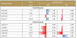 VIEW STRATEGICA La divergenza di politica monetaria delle due principali banche centrali, ha creato un gap nel percorso di rialzo dei tassi che dovrebbe iniziare a restringersi nel corso del 2019, determinando un indebolimento del dollaro US nei confronti della moneta unica europea. Inoltre, l’evoluzione della valuta comune dipenderanno probabilmente, nei prossimi mesi, dall’evoluzione di alcuni rischi allo scenario