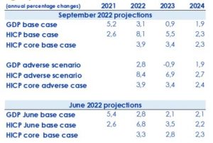 - Le proiezioni dello staff su crescita ed inflazione prevedono un’inflazione elevata per i prossimi due anni non solo nello scenario base ma anche nello scenario più avverso e recessivo