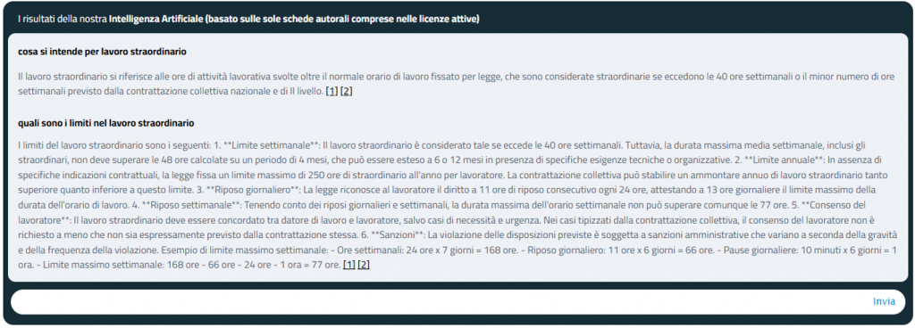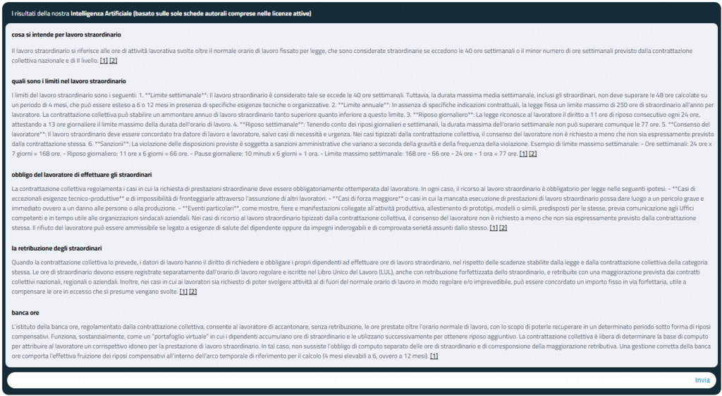 Sono previsti, tuttavia, dei limiti al ricorso del lavoro straordinario in modo da poter tutelare anche il diritto al riposo del lavoratore. Sul punto possiamo interrogare la nostra banca dati AI che ci fornisce un risultato allo stesso tempo sintetico ed esaustivo. Dal risultato emerge, infatti, che sono previsti vincoli temporali sia settimanali che annuali al ricorso del lavoro straordinario.