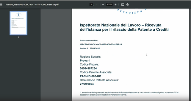 La trasmissione di tale autocertificazione/dichiarazione sostitutiva inviata mediante pec ha efficacia fino alla data del 31 ottobre 2024 e vincola l’operatore a presentare la domanda per il rilascio della patente mediante il portale dell’INL entro la medesima data.