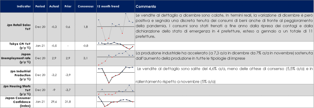 • Stati Uniti: I dati relativi all’indice ISM e al mercato del lavoro dovrebbero iniziare a riflettere il pacchetto fiscale di dicembre.