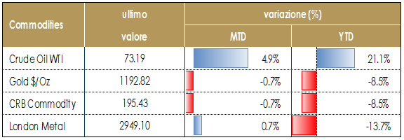 - Stati Uniti: attenzione rivolta alla pubblicazione dell’indice ISM manifatturiero per il mese di settembre e del report sul mercato del lavoro. Gli indicatori dovrebbero confermare lo scenario di espansione molto rapida in atto dalla primavera.