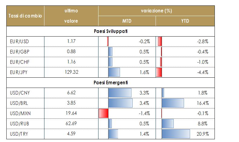 - Dati gli elevati costi per l’intera economia globale riteniamo che sia improbabile che i paesi coinvolti lascino instaurare una guerra commerciale.