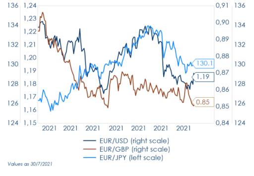 In conclusione, come atteso, la riunione di luglio ha aperto ufficialmente la porta all’”inizio della fine” delle politiche espansive, pur senza dare dettagli operativi. Allo stesso tempo, J. Powell è sembrato voler diminuire le aspettative su Jackson Hole, che potrebbe risultare meno importante per il tapering. La riunione di settembre dovrebbe essere, invece, più interessante per due motivi. In primo luogo, probabilmente farà un po’ più di chiarezza sulla tempistica del tapering, dato che il FOMC avrà avuto l’opportunità di discutere maggiormente la questione. E in secondo luogo, il dot plots comprenderà per la prima volta le previsioni dei membri del FOMC per il 2024, dando così un’idea del ritmo dei rialzi dei tassi che la Fed ha in mente.