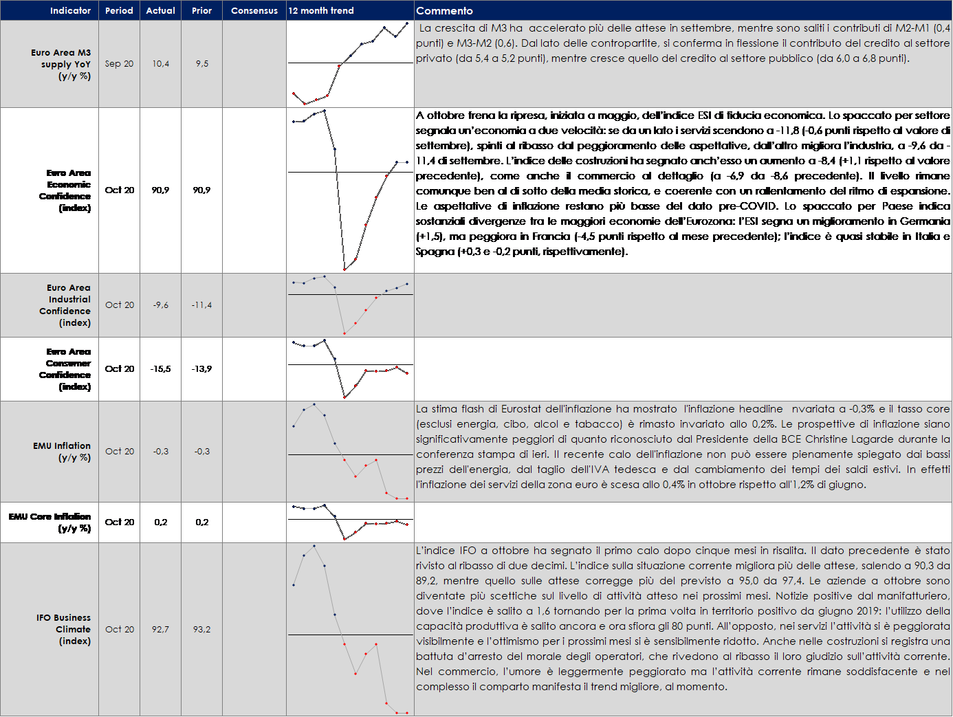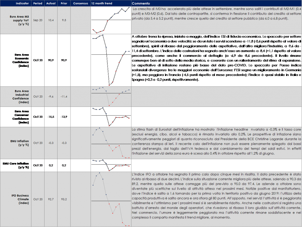 EUROPA: nuovi contagi, nuove misure di contenimento dell’attività economica a fronte di un’inflazione che resta in territorio negativo