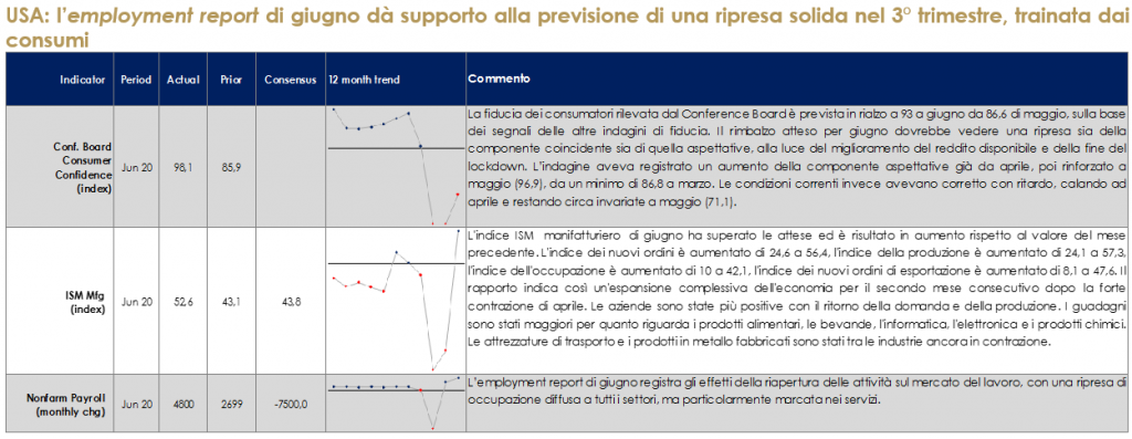 USA: l’employment report di giugno dà supporto alla previsione di una ripresa solida nel 3° trimestre, trainata dai consumi