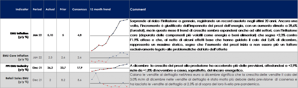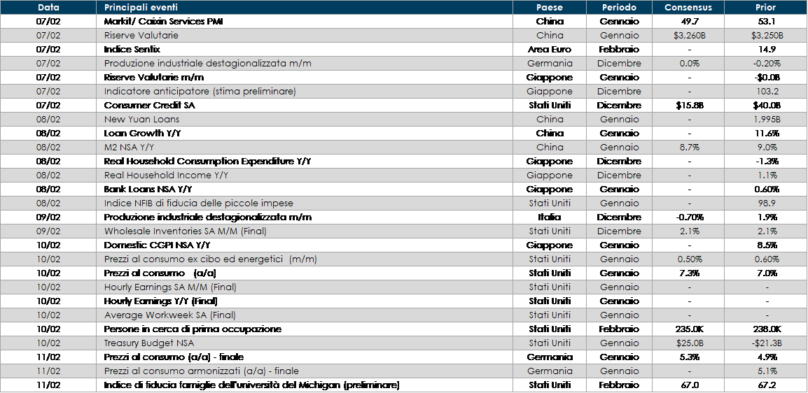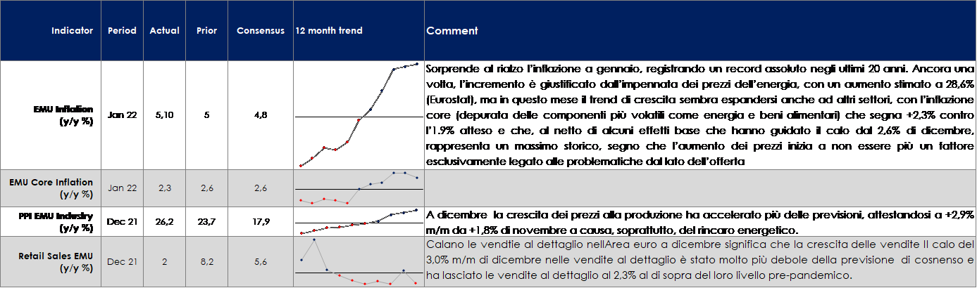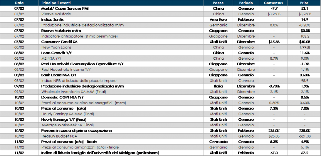 - Stati Uniti: il dato relativo all’inflazione del mese di gennaio catalizzerà l’attenzione dei mercati;