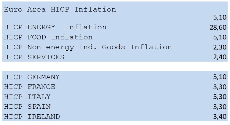 Fig.1: Il Consiglio Direttivo è stato probabilmente sia stato scosso dagli ultimi due dati dell’inflazione molto elevata a causa dei prezzi dell’energia