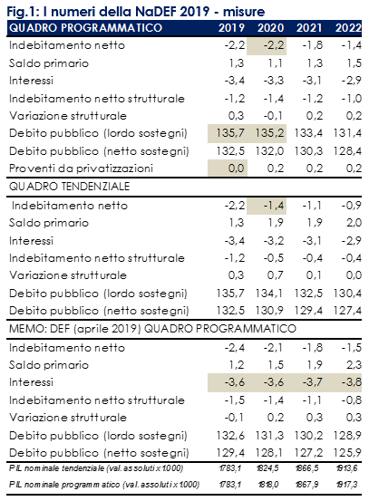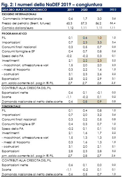 Fig. 2: I numeri della NaDEF 2019 – congiuntura