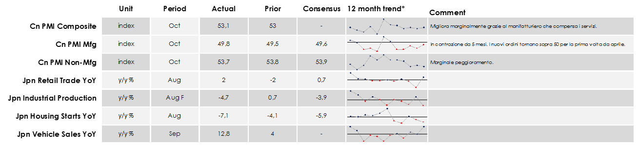 ASIA: Gli indici PMI cinesi relativi al mese di settembre confermano l’efficacia dello stimolo fiscale e monetario cinese