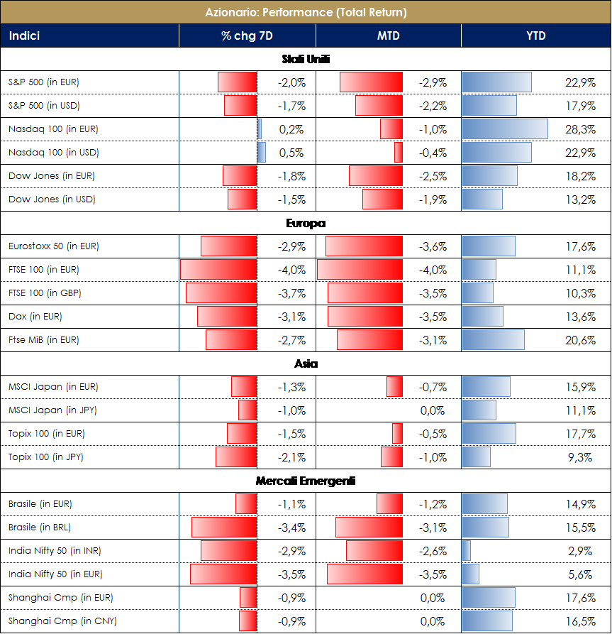 Le revisioni al ribasso del tasso di crescita degli utili, coerenti con il rallentamento del ciclo economico, stanno trovando compensazione in banche centrali meno aggressive delle attese, fattore che sostiene temporaneamente gli attivi rischiosi.