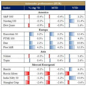 EUROPA: Finanziari: il CdA di Banca Carige approva la cessione entro il 30/06 di un portafoglio npl di circa 950mln a un veicolo di cartolarizzazione con garanzia Gacs sulla tranche senior. Il valore della cessione è almeno in linea con le previsioni piano. Sempre in tema di npl, Intesa Sanpaolo per il portafoglio da €2.5mld sta negoziando con la coppia formata da Christofferson Robb & Company e Bayview Asset Management. HSBC ha registrato un calo del 19% nei profitti del Q1 che sono scesi a $5mld contro i $6.1mld di un anno prima e si sono però attestati sopra le stime di $4.3mld degli analisti. Allianz ha aderito all’aumento di capitale di Unicredit da €13mld. L’utile netto del Q1 è atteso intorno a €612mln, in crescita rispetto ai €406mln di un anno prima. La Corte Suprema spagnola sta indagando sette banchieri di Banco Santander, compreso un attuale membro non esecutivo del CdA, a causa di un’indagine partita dopo una fuga di notizie su questioni fiscali dalla banca HSBC. Azimut Holding ha chiuso i primi tre mesi del 2017 con il secondo migliore utile netto della storia, a €73mln, un risultato superiore alle stime fornite dall’asset manager, grazie ad un andamento dei ricavi e dei costi più favorevole del previsto. Settore petrolifero e commodities: BP ha annunciato risultati del Q1 superiori alle attese degli analisti grazie all’aumento dei prezzi del petrolio e all’efficacia delle azioni taglio costi, fugando così i timori sulla sostenibilità del dividendo e la stabilità finanziaria del gruppo. Elliot Capital, secondo azionista di BHP Billiton, ha ricevuto il supporto dell’hedge fund Tribeca Investment Parners nella richiesta di cambiamenti sostanziali nella strategia del gruppo e, in particolare, per la cessione delle attività shale. Settore chimico: il comitato di vigilanza di Akzo Nobel ha in programma di riunirsi la prossima settimana per discutere come procedere dopo aver ritenuto insufficiente l’offerta di PPG Industries per $29mld.Industriali: Cementir ha rifinanziato la linea credito bridge da €330mln. La scadenza è stata prorogata a ottobre 2021 da aprile 2018, con rimborso in un’unica soluzione e con il medesimo pool di banche. Tenaris conferma la previsione di un EBITDA Margin al 20% nella seconda parte dell’anno, è fiduciosa sulla conquista di quote di mercato in Nord America, tuttavia non riesce a rassicurare gli investitori, delusi dall’outlook prudente sull’intero anno. Compagnie aeree: riguardo ad Alitalia si legge che l’amministrazione straordinaria è stata affidata a tre commissari ed è stato concesso un prestito ponte da €600mln concordato con l’Europa che consenta ad Alitalia di proseguire l’attività per sei mesi in attesa di un compratore che scongiuri la liquidazione. Abbigliamento: YOOX Net-a-Porter ha chiuso il Q1 con ricavi netti per €515mln, in crescita del 15.4% a cambi correnti e del 19.1% a tassi di cambio e perimetro costanti. Scenario positivo anche per Moncler che ha chiuso il Q1 con ricavi in crescita del 16%, a €276.2mln, grazie alla spinta del canale retail e, dal punto di vista geografico, alla crescita del mercato europeo. Prevede per quest’anno una crescita “mid-single-digit” dei ricavi del canale wholesale alla luce del buon andamento del primo trimestre. Infine Stefanel ha registrato nel 2016 una perdita netta di €25,3mln (-7,7mln nel 2015). Occhialeria: Luxottica chiude il Q1 con un fatturato in crescita del 5.2% a 2,384mld, in linea con le attese degli analisti, e con un miglioramento dei margini. Farmaceutico: i regolatori statunitensi hanno approvato il farmaco di immunoterapia durvalumab di AstraZeneca come trattamento per il cancro alla vescica, prima green light per un prodotto che la società spera farà vendite per miliardi di dollari. Recordati ha realizzato nei primi tre mesi dell’anno utile netto, EBITDA ed EBIT in crescita a doppia cifra, spingendo il management a rivedere leggermente al rialzo le stime per il 2017. Settore automobilistico: ad aprile le immatricolazioni di auto FCA in Italia hanno registrato un calo del 4% a 46,883 veicoli, con una quota di mercato del 29% dal 30% del marzo 2017. Il settore in Italia ha visto un calo del 4% a 160mila veicoli. Le vendite di auto negli Stati Uniti ad aprile sono scese del 7% su anno, a 177mila unità. M&A: Mediahuis e il partner VP Exploitatie hanno ricevuto l’approvazione delle autorità olandesi per acquisire il gruppo Telegraaf Media.