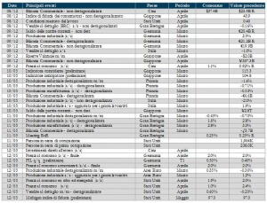 - Stati Uniti: settimana importante per valutare la solidità dei consumi negli Stati Uniti, dopo il dato delunendente del PIL. Saranno pubblicate le vendite al dettaglio e le scorte all’ingrosso oltre che all’indice di fiducia dei consumatori rialziato dall’università del Michigan;