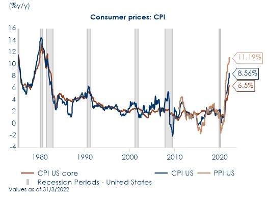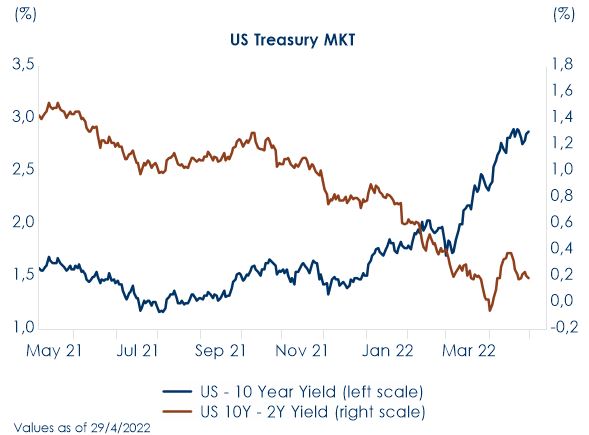 - Il presidente J. Powell ha sottolineato la necessità di normalizzare “rapidamente” la politica monetaria, poiché l’inflazione è troppo alta, e persistono rischi al rialzo (conflitto Russia-Ucraina e i nuovi lockdown in Cina) e un mercato del lavoro estremamente solido.