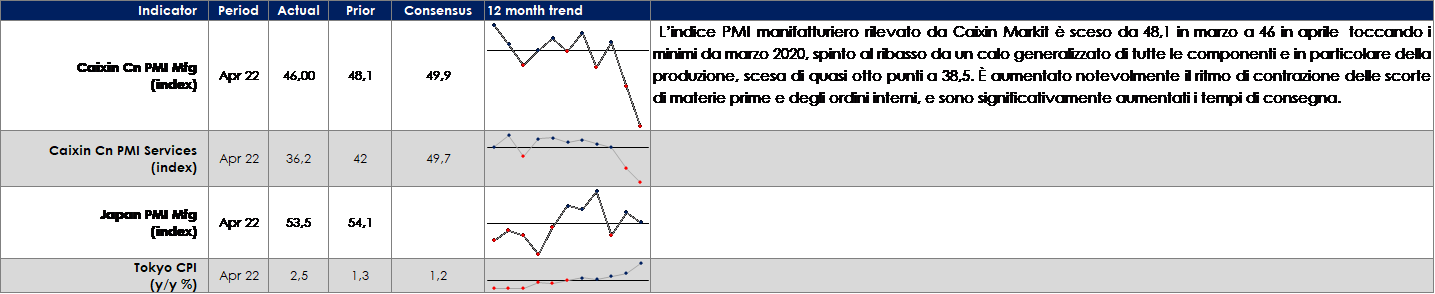 ASIA: In Cina gli indici PMI hanno segnalato che l’attività economica si è ulteriormente contratta in aprile