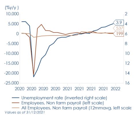 | Mercoledì di questa settimana sono stati pubblicati i verbali della riunione del FOMC di dicembre, dai quali emerge con chiarezza che la Federal Reserve si sta preparando ad accelerare il ritiro dello stimolo pandemico e a normalizzare la propria politica monetaria: il primo aumento del costo del denaro è più vicino di quanto atteso e il processo di riduzione del bilancio avverrà più velocemente rispetto al 2017-19. La rimozione dello stimolo avverrà su due binari paralleli, la svolta dei tassi e la riduzione del bilancio. Il primo dovrà precedere, anche se non di molto, il secondo. I verbali chiariscono che la riduzione del bilancio dovrebbe avvenire “in qualche momento dopo il primo rialzo dei tassi”, ma “probabilmente più a ridosso del primo rialzo (…) rispetto all’esperienza precedente” e “probabilmente in modo più veloce”.