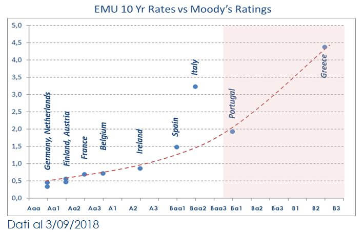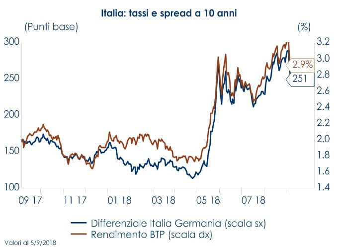 | Il Governo Italiano dovrà presentare entro il 27 settembre la Nota di Aggiornamento al Documento di Economia e Finanza (DEF) e definire il nuovo quadro programmatico. La bassa crescita potenziale dell’economia Italiana riduce i margini di operatività del governo Italiano e rende più incerte le stime sul deficit e debito atteso. Le future misure di governo sono ancora incerte ma quelle previste dal programma di governo implicherebbero, se implementate nella loro totalità, un marcato aumento del deficit previsto nel 2019. Per questo nei mesi estivi si è generata una situazione di forte incertezza sulle potenziali conseguenze delle future scelte dell’esecutivo. Questa incertezza ha comportato alcuni costi economici. In primo luogo, i mercati finanziari hanno iniziato a prezzare un rischio di ridenominazione e di insolvenza del debito,portando il differenziale di rendimento trai titoli governativi italiani e tedeschi sulla scadenza a 10 anni attorno ai 300pb e le quotazioni dei titoli italiani ad incorporare un rating più basso di quello attuale, mentre gli investimenti azionari, dopo il brillante inizio anno, hanno perso un 17% dai massimi, tornando ad essere uno dei peggiori listini europei. Inoltre, l’incertezza ha comportato una perdita di fiducia consistente da parte delle imprese manifatturiere. L’indice PMI manifatturiero per il mese di agosto si è attestato a 50,1, poco sopra la soglia che separa le aspettative di espansione da quelle di contrazione del settore. E’ facile prevedere, sulla base di questi numeri, che questa debolezza della fiducia delle imprese si tradurrà in una minor crescita della produzione industriale e in un PIL di T3 più debole (data di pubblicazione 30/10/2018).Le agenzie di rating Moody’s e S&P stanno attendendo la pubblicazione della Nota di Aggiornamento al Documento di Economia e Finanza (DEF) per rivedere il rating e outlook sull’Italia (Moody’s e S&P pubblicheranno il loro outlook il 26/10). C’è il rischio che vengano soddisfatti i criteri per declassare il debito sovrano al livello più basso dell’investment grade (una tendenza al ribasso del debito visibile e/o riforme strutturali). Un eventuale declassamento di un notch non rappresenterebbe una minaccia immediata di esclusione dei BTP dagli indici obbligazionari (e quindi la ponderazione in molti fondi obbligazionari), né rischierebbe di minacciare nell’immediato l’idoneità dei BTP come garanzia per le operazioni della BCE per gli acquisti di attività. Tuttavia, il declassamento del rating peserebbe chiaramente sul sentiment del mercato nei confronti dei titoli di stato italiani e, in tale contesto, non è possibile escludere il riemergere di spirali negative sul debito pubblico italiano. Altri costi potrebbero materializzarsi per l’economia italiana qualora l’aumento dell’incertezza politica e dello spread dovesse divenire permanente: in primo luogo, aumenterebbe l’onere per interessi, seppur più lentamente di quanto sarebbe avvenuto in passato, grazie alla politica attuata dal MEF durante il periodo di Quantitative Easing(allungamento della vita residua del debito), che ha portato la durata media del debito a 6.9 anni. In secondo luogo, aumenterebbe il costo del funding per le banche, con riflessi sul risparmio ma anche sul costo dei prestiti al settore privato, traducendosi in un aumento del costo e della selettività del credito a famiglie e imprese. Ciò potrebbe condizionare negativamente le attese di famiglie (meno consumi e più risparmio precauzionale) e imprese (blocco del riavvio del ciclo degli investimenti, più assunzioni con contratti a termine) instaurando una spirale negativa sulla crescita economica. Le ultime lending surveyBCE e Banca d’Italia sulle condizioni del mercato del credito in Italia non evidenziano segnali di deterioramento ma incorporano i dati fino a fine giugno. Sarà necessario attendere la pubblicazione del nuovo report. Infine, data la bassa crescita potenziale dell’Italia una rinnovata incertezza politica esporrebbe il paese al rischio soffrire più degli altri paesi europei, in caso di una correzione della congiuntura globale. |