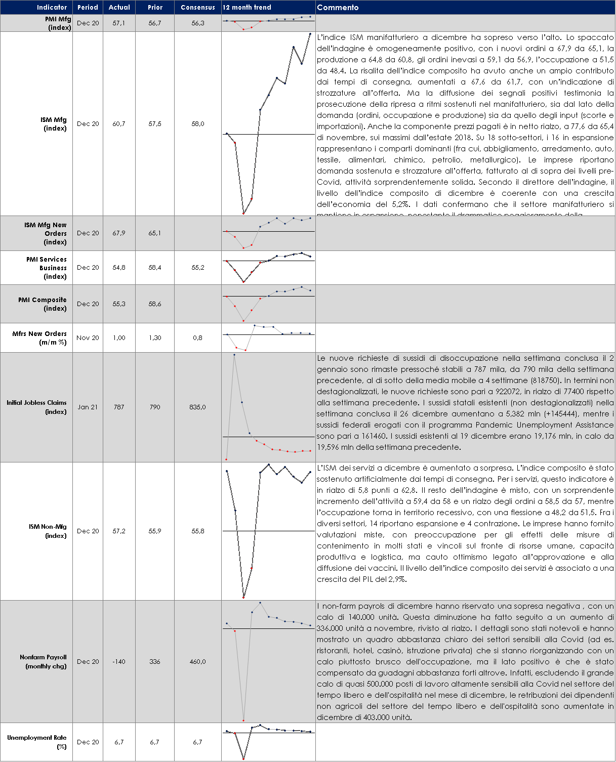MERCATI AZIONARI Georgia ed Ema le “girlfriend” del mercato. Nella prima settimana di mercato del 2021 Georgia ed Ema mettono letteralmente le ali ai listini azionari. L’affermazione della vittoria dei Democratici anche al Senato americano grazie al voto in Georgia per l’appunto, così come il via libera dell’autorità del farmaco Ema al secondo vaccino in Europa (dopo Pfizer, ora Moderna), sono stati capaci di allentare le tensioni causate dall’aumento dei contagi con annesse restrizioni e a smorzare le tensioni politiche derivanti dall’”assalto del Campidoglio” a Washigton. Nel breve terminel’impatto è stato nullo con l’ottimismo generalizzato degli investitori. In termini di performance EuroStoxx +2.50% trainato da Construction&Materials +8%, Energy +6.60% e Utilities +6%, contro gli unici settori in rosso Real Estate -2.90% e Auto -1.70% (quest’ultima all’ombra del gigante, sempre più grande ma chissà se anche buono, TESLA: +25% nella settimana, 700bn di capitalizzazione con Elon Musk il più ricco al mondo…). S&P500 +1.45% con +21% Auto Idx, +20% Copper, +15% Oil&Gas contro -7% Gas Utilities. Nasdaq 100 +1% trainato dall’euforia irrazionale di Tesla, così come quella vista sui BitCoin…L’indice MSCI Europe Value è salito del 25% da inizio novembre, verso un +12% del MSCI Europe Growth, ma lo sconto tra i due rimane elevato. I settori su cui gli investitori sembrano puntare per una ripresa restano Risorse di base, Banche, Petroliferi e Viaggi e Turismo (settori Value) e le società operanti nel settore delle Infrastrutture, delle Energie Rinnovabili e delle Auto Elettriche (nell’ottica di una transizione green e sostenibile). Negli ultimi mesi del 2020 si è anche assistito a una rotazione di natura tattica verso gli ETF indicizzati ai settori ciclici USA (industriali, finanziari, settore energia e dei beni di consumo discrezionali) che hanno raccolto sottoscrizioni per $26 mld. Nello stesso periodo gli ETF indicizzati ai settori più difensivi hanno visto riscatti per circa $5 mld. Se guardiamo all’Eurozona nel suo complesso, notiamo che il multiplo di P/E per l’indice EURO STOXX, calcolato sugli utili attesi dei prossimi 12 mesi è pari a 18.69, verso la media degli ultimi cinque anni pari a 14.50. Parafrasando l’illustre Jeremy Grantham, esiste davvero il pericolo di assistere all’ultimo ballo prima che la musica si fermi definitivamente (“Waiting for the last dance”)? A cura del team Core Equity Value di MB SGR PERFORMANCE MERCATI AZIONARI – Dati aggiornati alle ore 17.30 dell’8 gennaio 2021 VIEW STRATEGICA I dati sull’efficacia dei vaccini hanno innescato una nuova fase di aumento della propensione al rischio. Le componenti forward looking dei principali indicatori anticipatori hanno accentuato la loro accelerazione e i listini azionari hanno reagito con una riduzione dei premi al rischio, un deciso rialzo delle quotazioni e una rotazione settoriale |