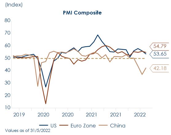 - I rischi rivolti verso il basso derivano dalla minaccia di nuovi massimi dei prezzi energetici, di ulteriori blocchi dell’attività economica in Cina e della recessione in Europa che diventerebbe realtà qualora si configurasse l’ipotesi di razionamenti alle forniture di gas, specialmente in Germania e Italia.