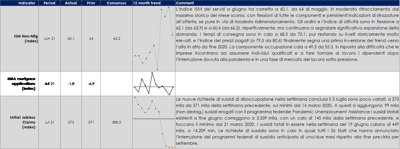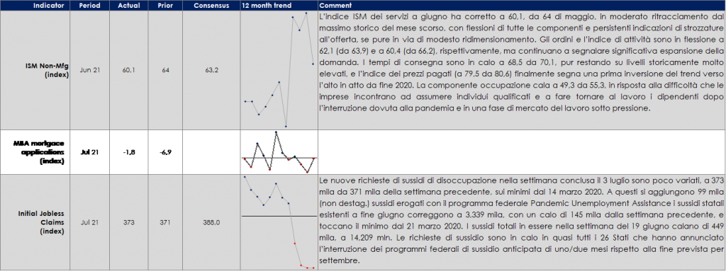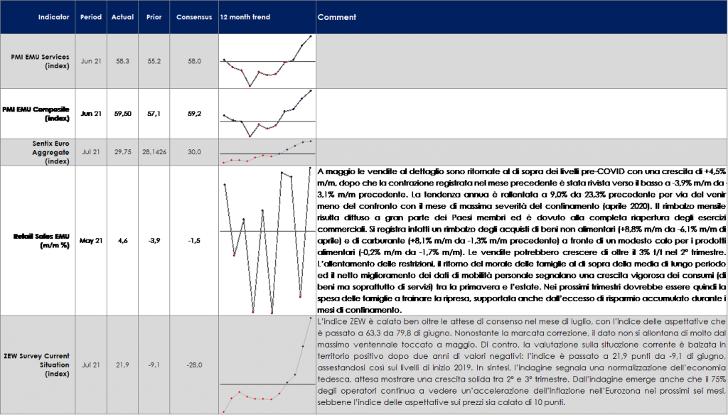 - Europa: nell’Area Euro sarà pubblicato la produzione industriale relativa al mese di maggio, che potrebbe mostrare un calo su base mensile a causa della carenza di semiconduttori che continuano a pesare sulla produzione automobilistica;