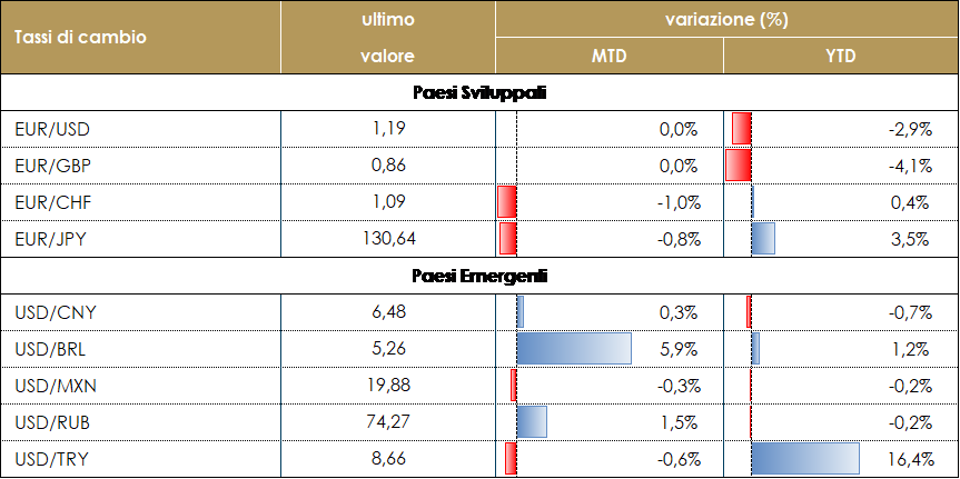 Nessuno aveva previsto un vertice così difficile per l’Opec+. Lo scorso fine settimana la coalizione ha cercato un compromesso per aumentare la produzione di petrolio per i mesi di agosto-dicembre, in risposta alla forte domanda e al rally dei prezzi ma la riunione non si è mai conclusa perché gli Emirati Arabi Uniti e l’Arabia Saudita/Russia non sono riusciti a superare le loro differenze e trovare un accordo sui livelli produttivi ingenerando uno scenario che vedrà un’offerta insufficiente, rispetto alla ripresa della domanda petrolifera in atto e potrebbe causare un eccessivo rincaro dell’energia. Così, il prezzo del petrolio e i prezzi dei futures sul petrolio sono inizialmente saliti lunedì sull’apparente visione che le quote di produzione troppo strette sarebbero rimaste in vigore. Poi nel corso della settimana sono scesi quando analisti e investitori hanno concluso che il rispetto delle quote da parte dei singoli produttori si sarebbe indebolito e che l’aumento della produzione avverrà comunque ma, invece di avvenire secondo un programma pianificato e con quote visibili, andrà avanti in modo non pianificato. Nessuno dei partecipanti al vertice dell’OPEC voleva di fatto continuare l’attuale livello di contenimento della produzione PERFORMANCE – Dati aggiornati alle ore 17.30 del 9 luglio 2021TASSI DI CAMBIO La settimana nel mercato FX ha visto un forte movimento di apprezzamento del dollaro, sia contro il G10 che contro i mercati emergenti. Apparentemente il mercato è sembrato spaventato da un possibile peggioramento nelle prospettive di crescita: la pubblicazione di un ISM non manifatturiero inferiore alle previsioni, l’impegno dell’autorità cinese a tagliare il RRR per sostenere alcuni settori della sua economia e la continua diffusione della variante Delta sono stati tra i motivi alla base di questi timori. L’USD ha guadagnato soprattutto contro le commodity currencies: le peggiori sono state la corona norvegese (-2,2%), il dollaro canadese (-1,7%) e il dollaro australiano (-1,3%). Quest’ultimo ha sofferto anche se, durante la settimana, la Royal Bank of Australia ha annunciato la sua decisione di ridimensionare il sostegno all’economia riducendo gli acquisti di obbligazioni di 1 miliardo di AUD a settimana, a partire da settembre (dagli attuali 5 miliardi di AUD a 4 miliardi di AUD). Nei mercati emergenti, il Real brasiliano ha perso quasi il 4% contro il dollaro, in un movimento improvvisa che ha cancellato i guadagni registrati dall’inizio di giugno. Il Real è stato solo il front runner di un gruppo di valute ad alto beta rispetto al ciclo di crescita globale come il Peso messicano e il rublo russo: tutte queste valute hanno sofferto durante la settimana poiché la paura di una decelerazione della crescita ha offuscato le loro prospettive, già scosse dalla percezione di una FED meno accomodante. A cura del team obbligazionario di Mediobanca SGR PERFORMANCE TASSI DI CAMBIO –Dati aggiornati alle 17.30 del 9 luglio 2021 |