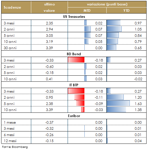 Negli Stati Uniti il mercato obbligazionario è rimasto spettatore sia di fronte alle elezioni di mid term sia di fronte al FOMC. Il mercato che continua a “leggere” negli statement della FED conferme per un rialzo a dicembre e un percorso che rimarrà graduale e “datadependent” nel 2019.