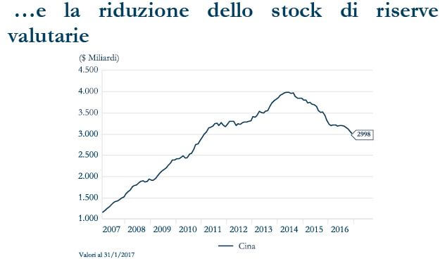 - Il deflusso di riserve valutarie cinesi è la conseguenza della decelerazione economica del paese e dei passi ufficiali in direzione della liberalizzazione del conto capitale della sua bilancia dei pagamenti.