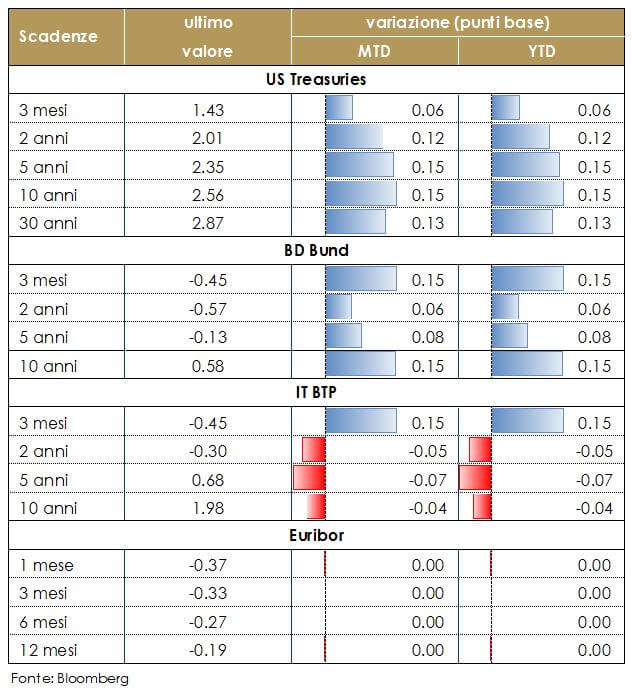 I verbali della BCE del meeting di dicembre hanno segnalato al mercato che la BCE potrebbe prendere in considerazione, dall’inizio di quest’anno, un graduale cambiamento del linguaggio relativo ai vari aspetti della politica monetaria, per riflettere meglio l’espansione dell’economia. La modalità di comunicazione dovrà evolversi gradualmente “senza modifiche nella progressione” per evitare un ingiustificato irrigidimento delle condizioni finanziarie, qualora l’economia continuerà ad espandersi e l’inflazione si muoverà verso l’obiettivo della BCE, prossima ma sotto il 2%. È interessante notare che i verbali mettono in evidenza che a dicembre i membri del Consiglio Direttivo se da un lato hanno ritenuto non giustificabile un ulteriore allentamento della politica monetaria, dall’altro hanno considerato prematuro ogni cambiamento alla stance di politica monetaria. Non c’è stata discussione sulla fine del QE, all’interno del Consiglio Direttivo. Tuttavia, il mercato ha interpretato il messaggio di policy come il primo passo verso la normalizzazione della politica monetaria che consentirà alla BCE di terminare il programma di QE dopo settembre 2018. Sul fronte dei dati macroeconomici sorprende al rialzo la produzione industriale della Area Euro in novembre, registrando un aumento di +1,0% m/m a fronte di attese di 0,8% m/m; positiva anche la revisione del dato precedente che porta l’espansione in ottobre dallo 0,2% m/m precedentemente indicato a +0,4% m/m. In termini di contributi settoriali, le voci di espansione più robuste sono quelle relative ai beni capitali (+3,0% m/m) e durevoli (+1,6% m/m); più modesti risultano gli incrementi per la produzione di beni intermedi (+1,1% m/m), mentre rimangono sostanzialmente invariati rispetto al mese precedente i contributi di energia e beni di consumo non durevoli.