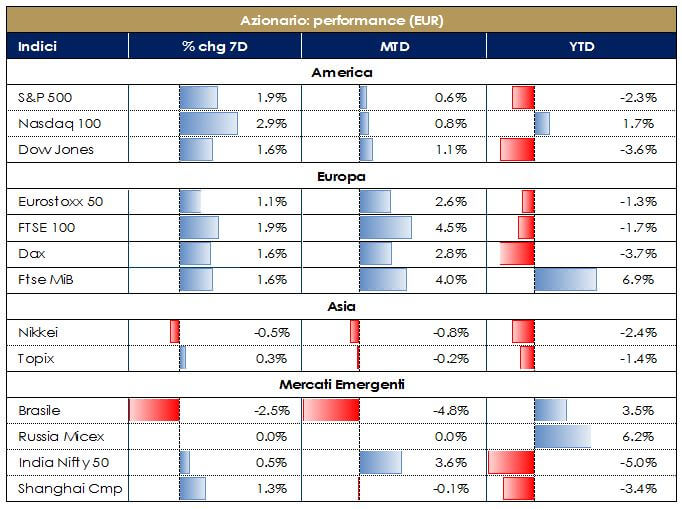 Il presente documento (il “Documento”) è stato preparato dalla Funzione Investment Advisory di Mediobanca SGR SpA (la “SGR”) a scopo puramente informativo. Il documento non ha carattere di offerta, invito ad offrire, o di messaggio promozionale finalizzato all’acquisto, alla vendita o alla sottoscrizione di strumenti/prodotti finanziari di qualsiasi genere. Inoltre, esso non è inteso a raccomandare o a proporre una strategia di investimento in merito a strumenti finanziari. In particolare il presente Documento non costituisce in alcun modo una raccomandazione personalizzata; lo stesso è stato predisposto senza considerare gli obiettivi di investimento, la situazione finanziaria o le competenze di specifici investitori. Il presente Documento è proprietà di Mediobanca SGR; esso non può essere riprodotto o pubblicato, nemmeno in una sua parte, senza la preventiva autorizzazione scritta della SGR. Le informazioni, opinioni, valutazioni e/o previsioni contenute nel presente Documento (le “Informazioni”) si basano su fonti ritenute autorevoli ed attendibili; tuttavia, la SGR non assume alcuna responsabilità per eventuali errori od omissioni né potrà considerarsi responsabile per le eventuali perdite, danni o conseguenze di qualsivoglia natura (legali, finanziarie o fiscali) che dovessero derivare dal fatto che si sia fatto affidamento su tale Documento. Ciascun investitore dovrà pertanto assumere le proprie decisioni di investimento in modo autonomo, tenuto conto delle sue caratteristiche e dei suoi obiettivi di investimento, e a tale scopo non dovrà basarsi, prioritariamente o esclusivamente, sul presente Documento. I rendimenti passati, eventualmente rappresentati nel Documento, non sono indicativi né garantiscono gli stessi rendimenti per il futuro. Le Informazioni contenute nel presente Documento costituiscono valutazioni aggiornate alla data della sua produzione e potrebbero variare nel tempo, senza necessità di comunicazione da parte della SGR.