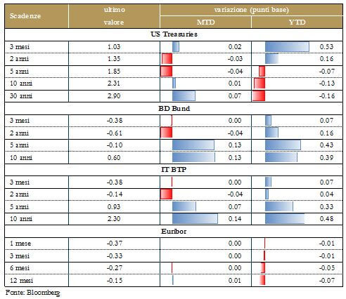 - La rimodulazione delle aspettative di politica monetaria e fiscale pesa sui rendimenti dei titoli governativi e sul dollaro