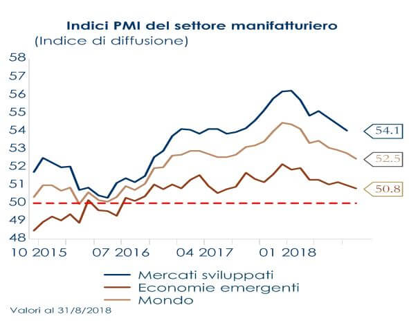 • Il rallentamento dei PMI manifatturieri degli ultimi mesi lascia prevedere un rallentamento dell’attività manifatturiera nei prossimi mesi