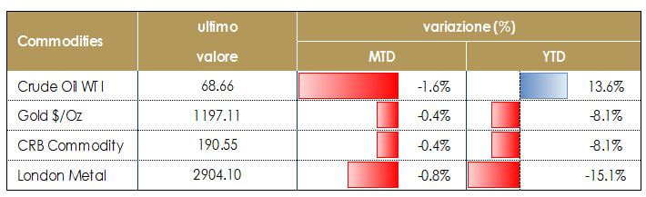 Riteniamo che le dinamiche commerciali e la rimodulazione delle attese future da parte della Fed guideranno il rafforzamento del dollaro fino alla fine dell’anno. La normalizzazione della politica monetaria si sta muovendo a ritmi diversi tra le banche centrali e i mercati hanno rimodulato le aspettative di politica monetaria. La Fed procede il suo percorso di rialzo del costo del denaro muovendosi verso la neutralità, mentre la BCE manterrà i tassi invariati fino all’estate 2019, terminando gli acquisti netti da dicembre dell’anno in corso e la Banca del Giappone ha lasciato la sua politica invariata ma ha rivisto al ribasso le stime sull’inflazione. Si è, dunque, ampliata la divergenza delle politiche monetarie.