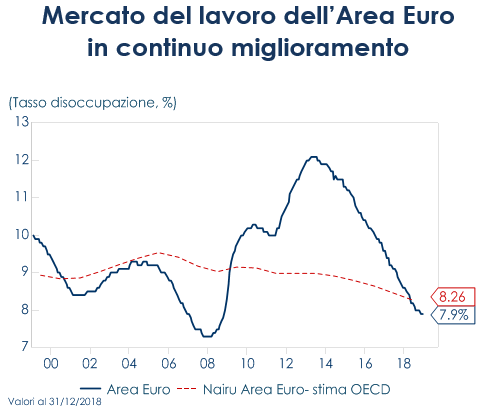 I principali paesi dell’Area sono in una fase di rallentamento Mercato del lavoro dell’Area Euro in continuo miglioramento L’indebolimento della valuta comune dovrebbe tornare a supportare le esportazioni |