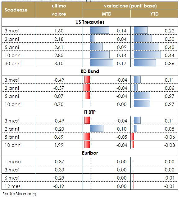 - Il dato sull’inflazione va nella direzione di un’economia in crescita che gradualmente vede aumentare il proprio livello dei prezzi in un contesto caratterizzato da una normale relazione tra crescita, inflazione e mercato del lavoro