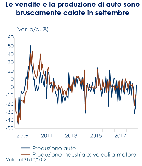 - L’industria tedesca dell’auto risente del passaggio alla normativa WLTP, dell’escalation della guerra commerciale USA-Cina e quindi del rallentamento della domanda cinese