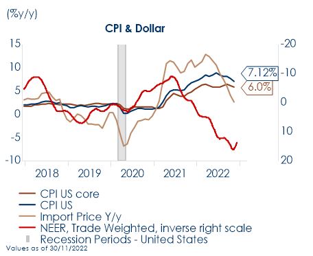 Fig. 1: Nonostante l’inflazione US abbia raggiunto il picco, J.Powell segnala che non vi saranno tagli dei tassi nel 2023