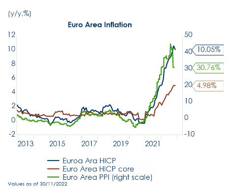 - In una riunione dai toni piuttosto hawkish, la BCE ha alzato i tassi di 50 pb, segnalando che questi dovranno aumentare ancora “in maniera significativa” e a “ritmo sostenuto” per contenere l’inflazione. Il QT inizierà a marzo, con un ritmo mensile di 15 miliardi di euro fino alla fine del secondo trimestre.