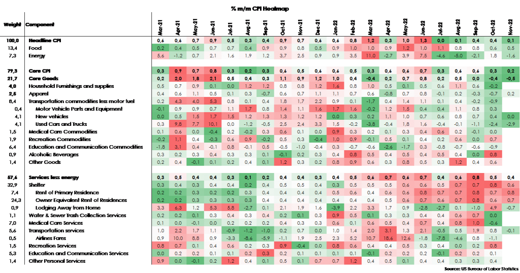 La seguente tabelle riportano la heatmap delle variazioni mensili delle componenti dell’inflazione al consumo, negli ultimi mesi aiutando nell’esemplificazione dei movimenti delle singole componenti.