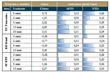 - Negli Stati uniti, da segnalare lunedì l’Activity Index della Fed e martedì la bilancia corrente. Mercoledì, saranno disponibili diversi indicatori relativi al mercato immobiliare e del credito connesso, e giovedì, si avranno interessanti spunti relativi al mercato del lavoro.
