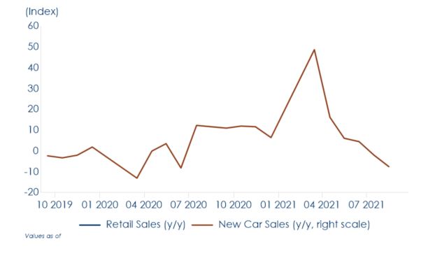 Fig. 5: La maggior sorpresa al ribasso è venuta dalle vendite al dettaglio che hanno subito una brusca frenata |