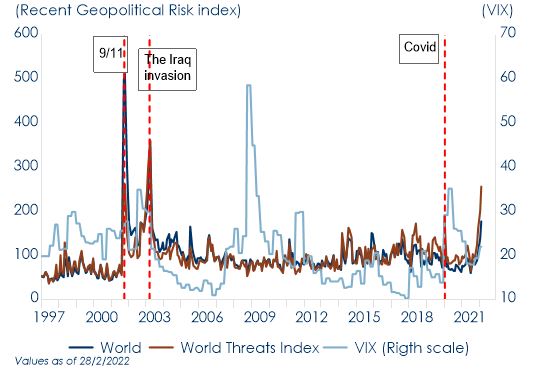 Fig.1: La Federal Reserve ha deciso di alzare il costo del denaro nonostante l’aumento dell’incertezza geopolitica e dei rischi