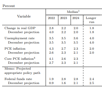 Lo statement ha assunto un tono hawkish, segnalando “continui aumenti” dei tassi di interesse e l’inizio del quantitative tightening in “una prossima riunione”. L’inflazione è stata descritta come “elevata” a causa di squilibri fra domanda e offerta dovuti alla pandemia, ai prezzi energetici e a pressioni “più diffuse” sui prezzi, mentre la Fed ha ammesso che ulteriore pressione sui prezzi sarà legato all’invasione russa dell’Ucraina. Secondo il FOMC, l’inflazione dovrebbe tornare a scendere a condizione di “un’adeguata fermezza nell’orientamento della politica monetaria”. Lo statement evidenzia, inoltre, il continuo rafforzamento della crescita e dell’occupazione, con un “sostanziale” declino del tasso di disoccupazione. Contestualmente, sono state pubblicate le nuove proiezioni macroeconomiche. La crescita attesa è più moderata di quella prevista a dicembre, con 2,8% a fine 2022, 2,2% nel 2023 e 2% nel 2024, ma resta comunque al di sopra del potenziale. La revisione verso l’alto della mediana dell’inflazione attesa è importante e vede l’inflazione core a 4,1% a fine 2022 (da 2,7% di dicembre), a 2,6% a fine 2023 e a 2,3% nel 2024. Il sentiero del tasso previsto di disoccupazione è rimasto sostanzialmente invariato rispetto a dicembre, stabile a 3,5% a fine 2022 e 2023 e in marginale rialzo a 3,6% nel 2024.
